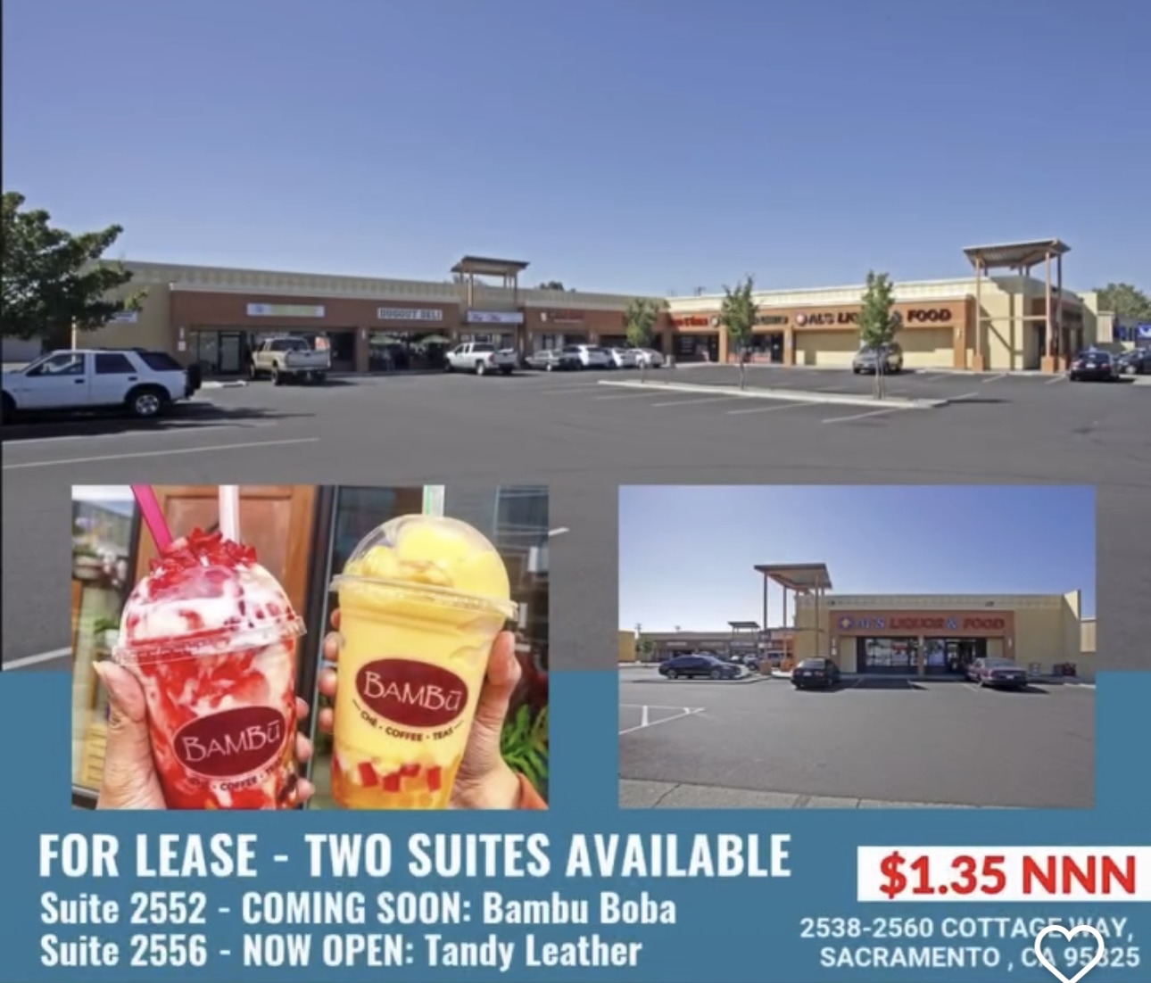 Recently Leased to Tandy Leather (Now Open) and Bambu / Sandwich spot (coming Soon).